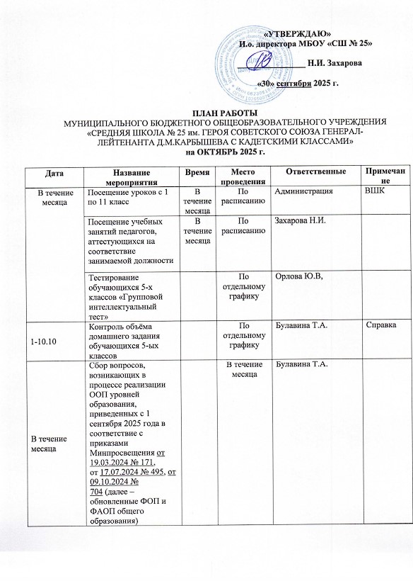 ПЛАН работы на октябрь 2025 г. полностью здесь